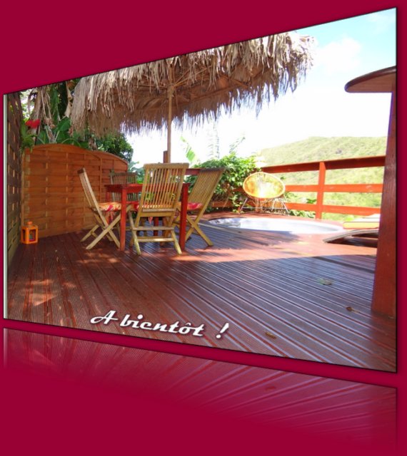 |  Vue panoramique de la terrasse |  | La terrasse en bois aménagée, vous offre une magnifique vue sur les Mornes, le Cap Salomon et Grande Anse.